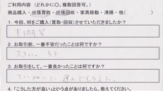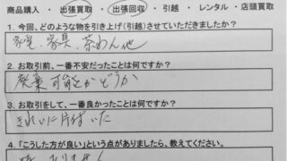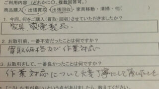 お客様の声 お客様の声|不用品回収・不用品買取|名古屋市千種区田代町 ご利用サービス 出張買取・出張回収 今回、何をご購入(買取・回収)させていただきましたか? 家具など お取引前、一番不安だったことは何ですか? どういうものを引き取っていただけるのかが心配でした。 お取引をして、一番よかったことは何ですか?... 2025.09.30 お客様の声