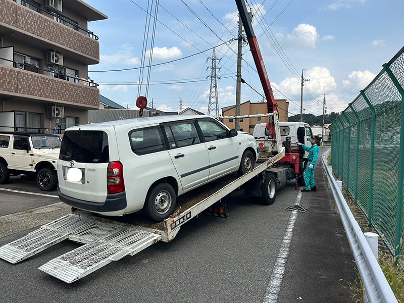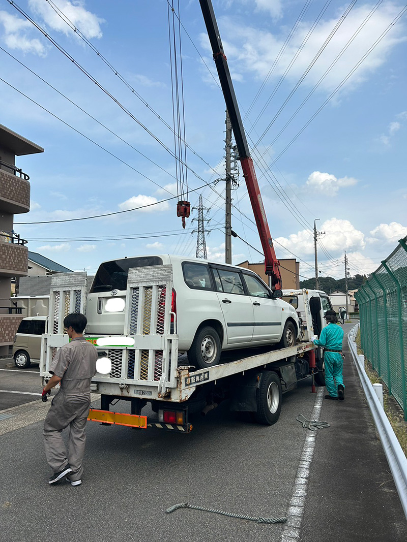 当社では不動車や事故車の回収にも対応しており、自社でクレーン車を保有しておりますので、動かせないお車でも安全かつスムーズに搬出が可能です。廃車手続きや処理に関しても一括して承っておりますので、お客様に面倒なお手続きをしていただく必要はございません。