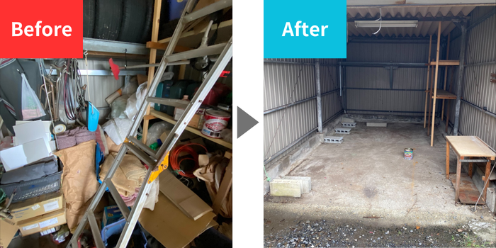 長年使用されていた倉庫とのことで、家具や家電、工具類などさまざまな不用品がありましたが、スタッフ2名で約1時間ほどでスッキリと片付けることができました。