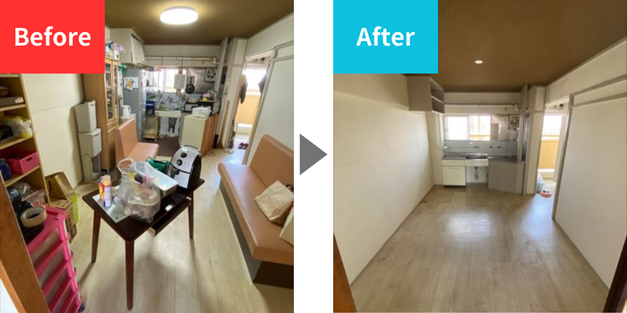 また、お客様が驚かれていたのは「エアコンや湯沸かし器などの取り外しまで対応できる」という点でした。一般的に専門業者に依頼しなければならないケースが多い取り外し作業も、当社では自社スタッフが一貫して行いますので、別途手配の手間や費用をかける必要がありません。その分スムーズに作業が進み、お客様にも大変ご安心いただけました。